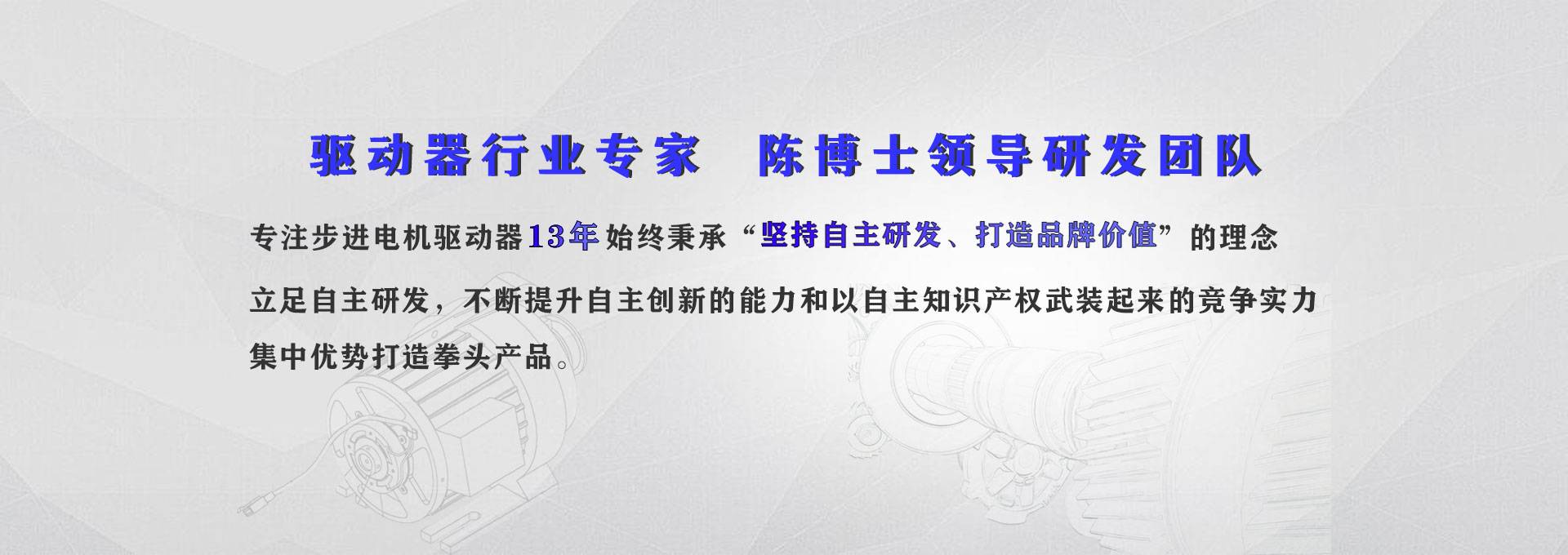 陈占军博士是深圳市高层次后备级人才,专注于步进电机驱动器领域研究。是步进电机驱动器行业内第一个做全数字化步进驱动器的专家,第一个采用TI的DSP作为数字处理芯片,提高了电机的运动控制性能。陈博士带领多人的研发团队,包括博士、硕士、本科专业在内的专业人才,专注于电机驱动器的技术创新与研发,为您的设备保驾护航。